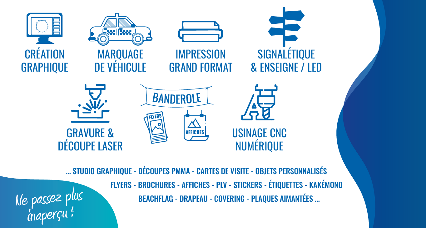 À l’atelier JPB Communication, nous savons que chaque support de communication est un véritable vecteur d’image. Qu’il s’agisse d’une enseigne lumineuse, d’une signalétique intérieure ou extérieure, d’un flyer ou d’un marquage de véhicule, chaque élément visuel participe à la visibilité et à la crédibilité de votre activité. C’est pourquoi nous accompagnons nos clients avec une approche globale fondée sur l’écoute.